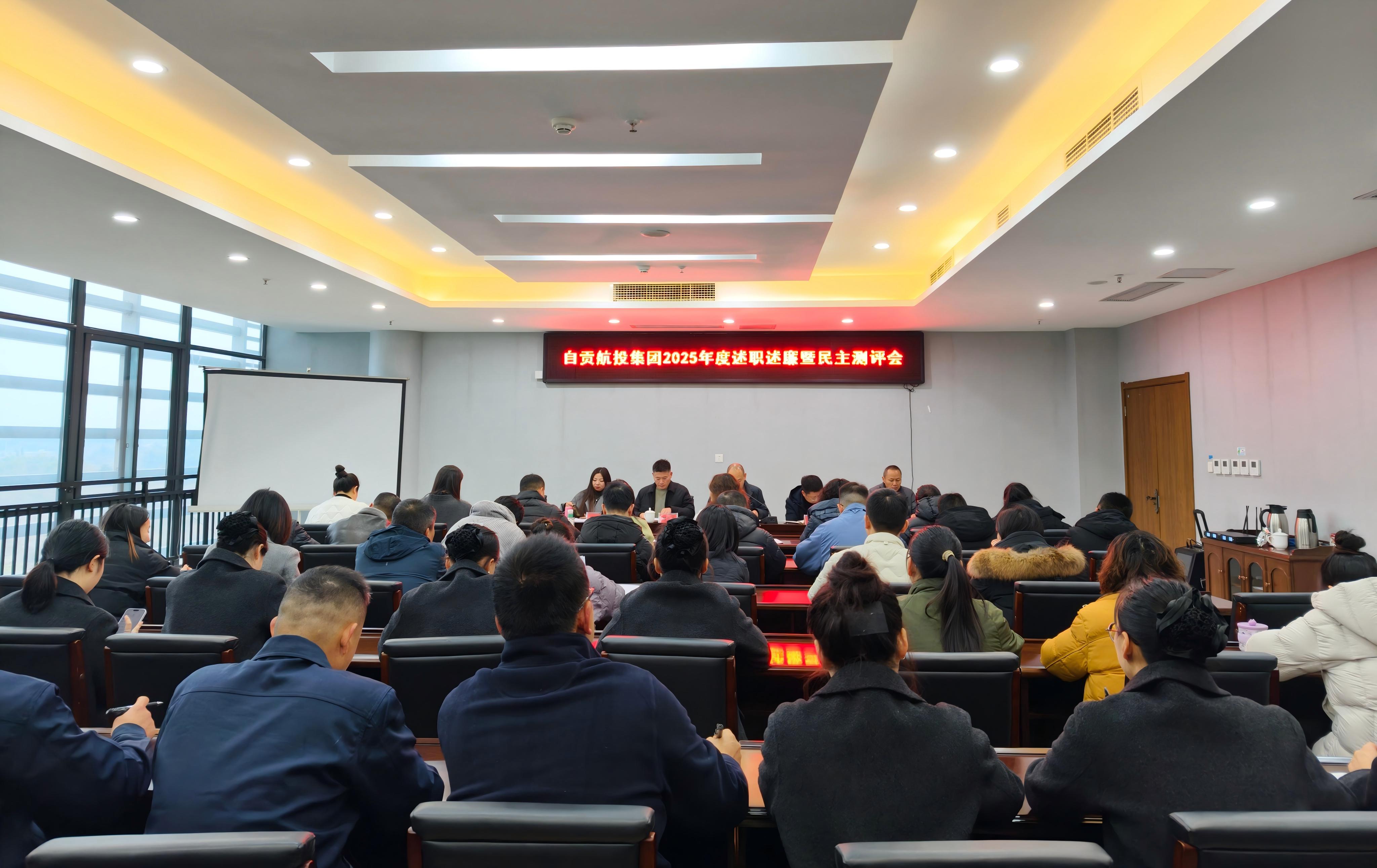 2026.01.21 自贡航投集团召开2025年度述职述廉暨民主测评会 为全面检验各部门2025年度工作成效,压实党风廉政建设责任,1月19日,自贡航投集团召开2025年度述职述廉暨民主测评会,公司全体干部职工参加本次会议。
