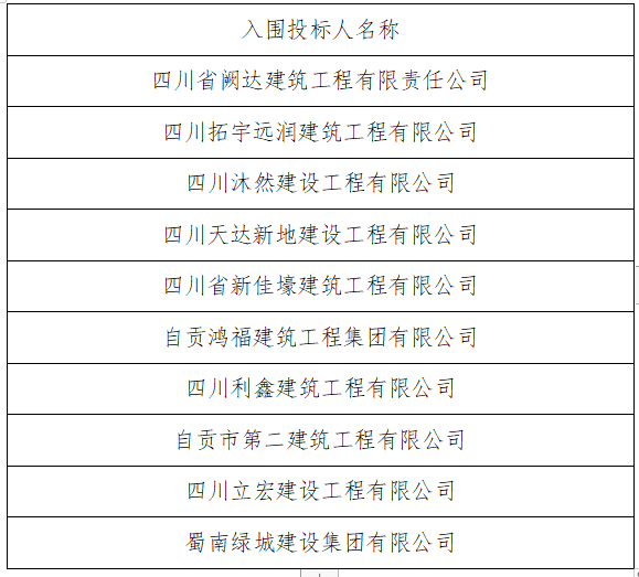 2025年度自贡航空产业投资集团有限责任公司小型项目施工单位储备库 中标公告